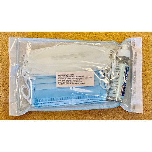 •  14-day 3ply Face Masks/KN95/Sanitizer (kit)