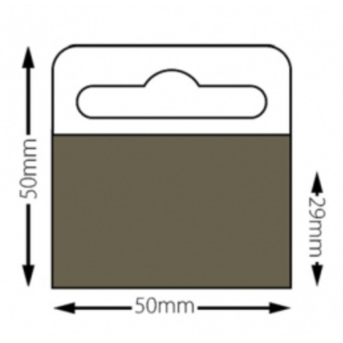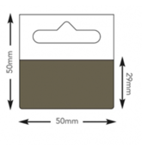 1) 50x50mm with an adhesive area of 50x29mm high. Eco Cardboard Hang Tab 100% Plastic Free