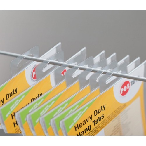 APET 275mu Flexi tail Hang Tab range with a high tack adhesive. With a 400g recommended display weight, it is ideal for use of hanging many products in store, on peg hooks or clips strips. The APET material is virtually crystal clear.