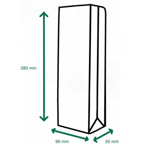 P3 - 90mm wide x 50mm gusset x 280mm high (see diagram for dimension layout)