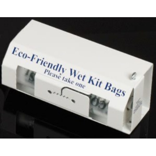 Small Size: 245mm x 110mm x 110mm. Robust wall mounted brushed steel dispenser. Holds 1 roll of 200 Eco-Friendly Damp Kit Bags. Supplied complete with fixings.