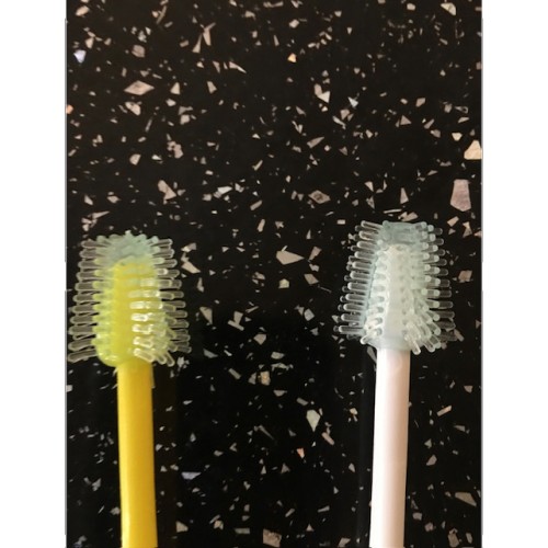 The MC3 is a gentle mouth-cleanser that eliminates choking or aspirating hazards that can be experienced with sponge swabs, and removes the discomfort and awkwardness of toothbrushes. The cone-shaped head and smooth rounded filaments sooth the soft tissues when cleansing the oral mucosa – and by applying a rotating action the MC3 can collect debris as it cleans.