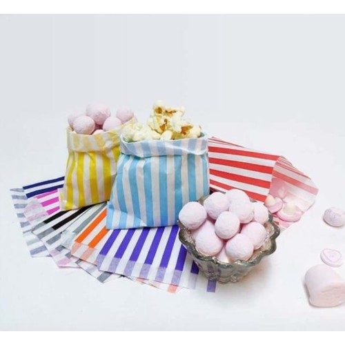 • Candy Striped Flat Paper Bags (Blue and Pink Striped)